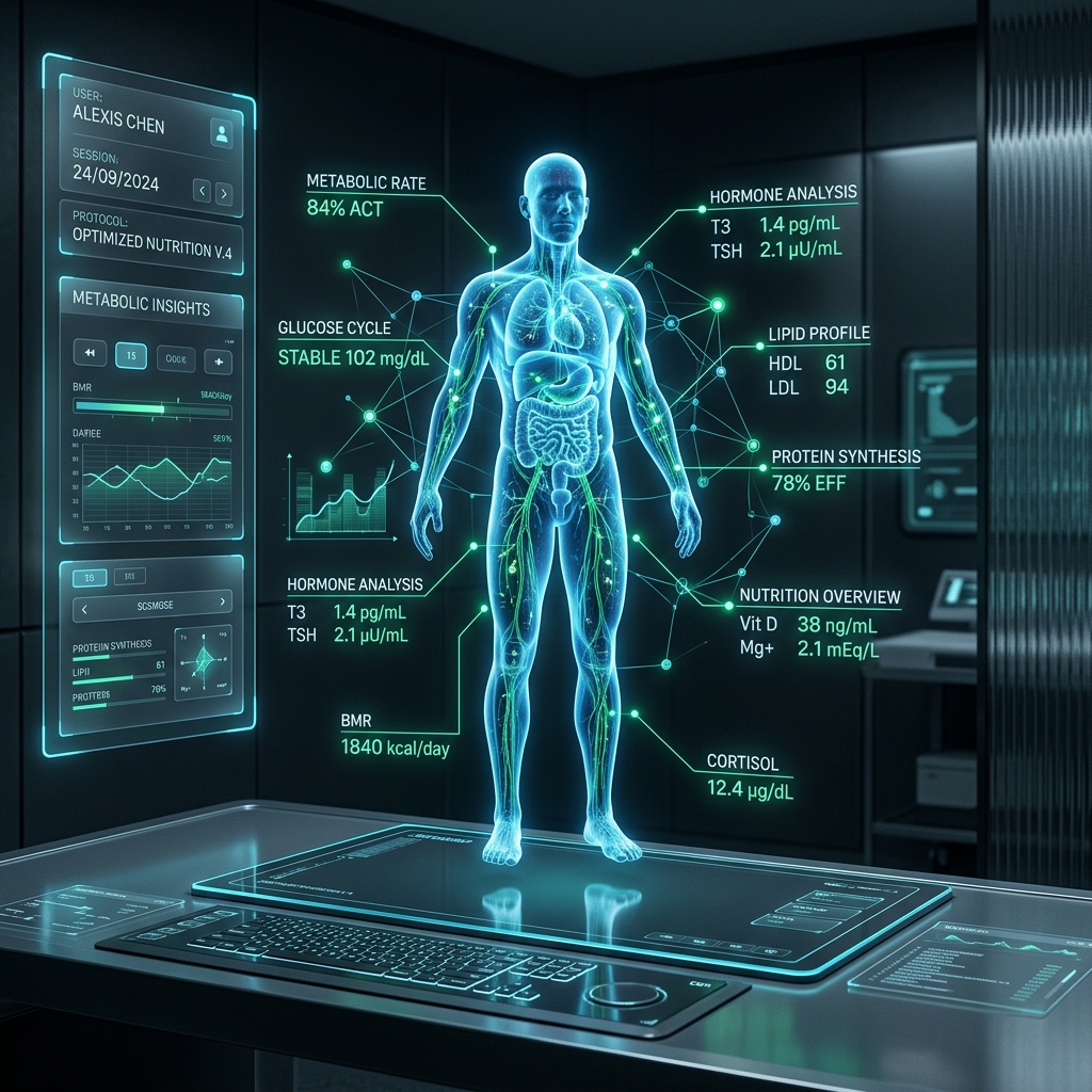 Algoritmos de Deep Learning que entendem sua genética e rotina para ajustar macros em tempo real.